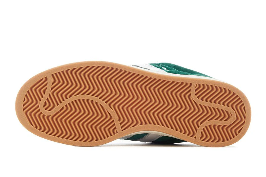 Der Adidas Campus 00s Green Cloud White hat eine lebendige grüne Lederbasis mit den charakteristischen drei breiten weißen Lederstreifen auf dem seitlichen Panel, die für die Marke typisch sind und mit dem Fersenlasche harmonieren. Ähnlich wie der Campus 80s wird dieses Modell von einer makellosen Gummisohle abgerundet.