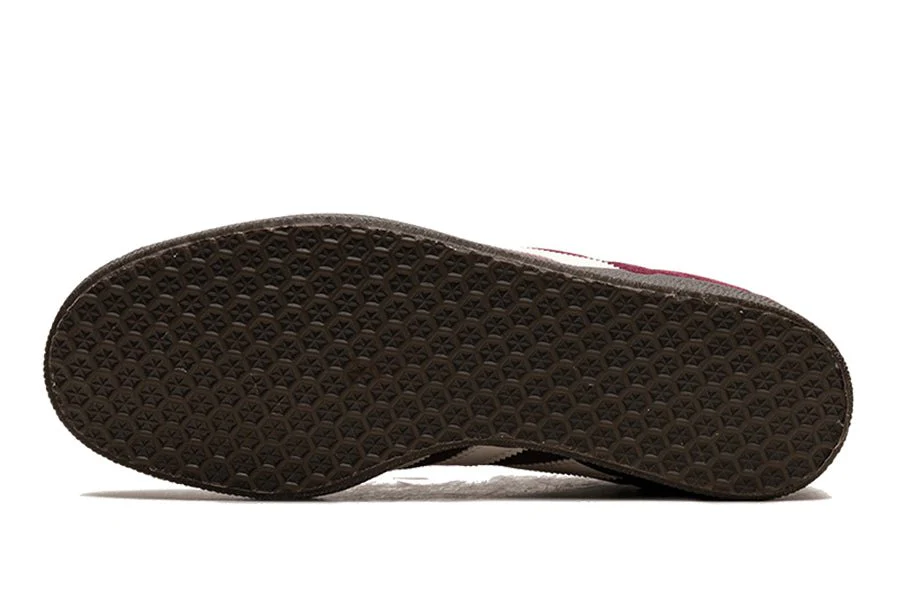 Herkunft der Jahre 60, diese ikonische Silhouette der deutschen Marke ist mit einem Obermaterial aus Bordeaux-Nubukleder versehen. Die adidas Gazelle Maroon Chalk White wird auch von den drei charakteristischen Streifen aus weißem Leder an der Seitenwand und ihrer Sohle aus schwarzem Gummi begleitet, die ihren Charme ausmachen.