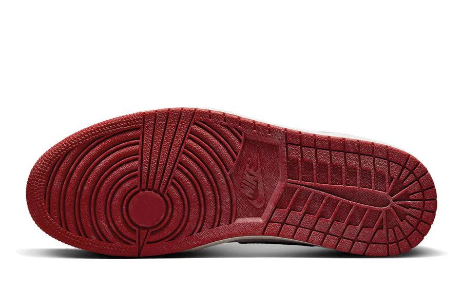 Der Air Jordan 1 High Chicago Lost And Found hat eine Basis aus weißem Leder mit einem Crackle-Finish, das sich auch auf dem schwarzen Lederkragen wiederfindet. Die gesamte Struktur ist mit rotem Leder überzogen, das an den ikonischen Farbcode des Chicago Bulls Teams erinnert. Eine off-white Zunge mit Antik-Effekt passt zur Mittelsohle und sorgt für einen Retro-Look. Das Ganze liegt auf einer roten Außensohle, die an das Originalmodell von 1985 erinnert.