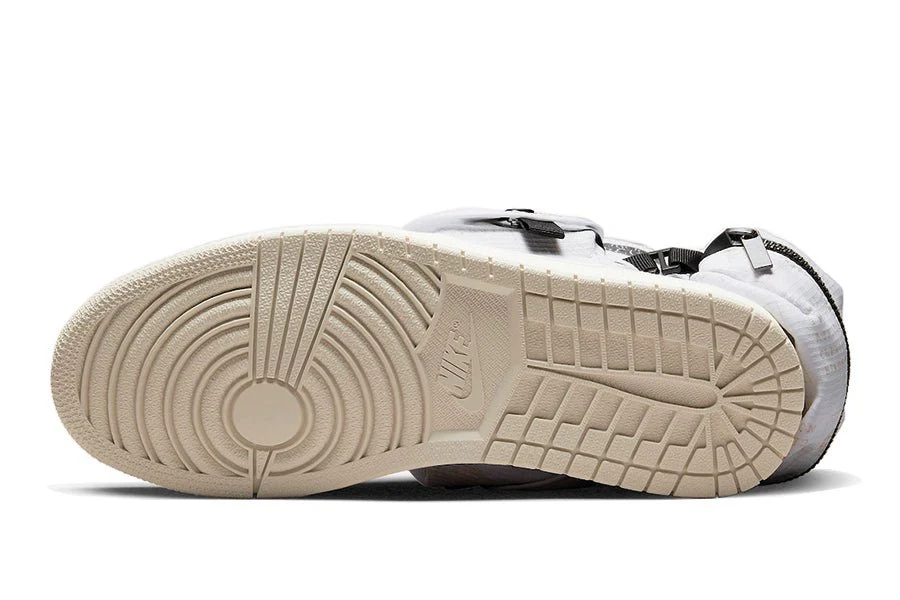 die robuste und technische version des air jordan 1 high, der utility stash, kommt in einer neutralen und cleanen farbe zurück!