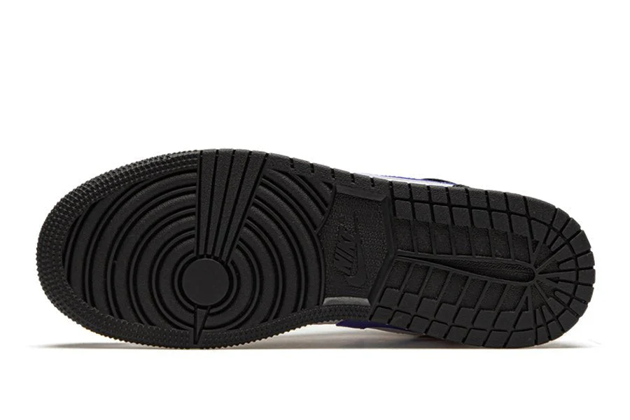 der air jordan 1 mid black racer blue white hat ein obermaterial aus leder. abwechselnd weiße einsätze an den seiten und auf der toebox sowie schwarze teile auf dem rest des obermaterials sorgen für kontrast, während ein blauer swoosh für den farbtupfer sorgt. ein weißes wings-logo und ein gelber jumpman auf der zunge vervollständigen das paar.