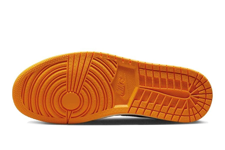 Der Air Jordan 1 High Yellow Toe kommt in einem dreifarbigen Farbton. Die Midsole besteht aus weißem Leder für die Seitenwand. Die anderen Einsätze, ebenfalls aus Leder, sind schwarz und gelb gefärbt. Die gelbe Outsole passt insbesondere zur Toebox und der Fersenverstärkung. Das weiß-gelbe Retro-Tag auf der schwarzen Zunge gibt dem Ganzen den letzten Feinschliff.