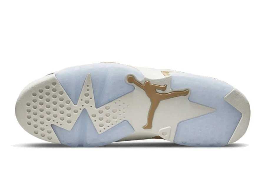 der air jordan 6 low chinese new year 2022 hat eine schlichte basis aus weißem perforiertem leder. weitere weiße details finden sich in der mittelsohle und in den ösen. ein jumpman auf der outsole und ein hauch von himmelblau runden die kreation ab.