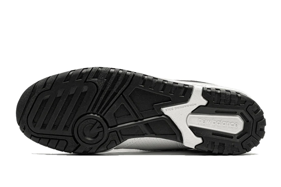 der new balance 550 white black hat eine gemischte struktur aus weißem glattleder und perforiertem leder, das mit schwarzen einsätzen auf den brandings, der zunge und der hinteren verstärkung bedeckt ist. diese basketball-silhouette wird durch eine zweifarbige sohle in weißen und schwarzen tönen verfeinert.
