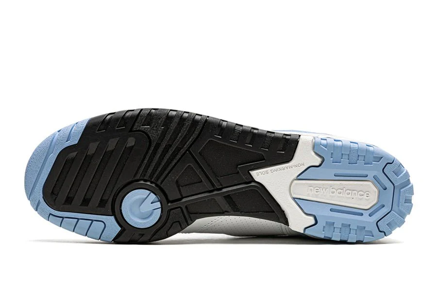 Der New Balance 550 White University Blue ist eine Mischung aus perforiertem Leder und weißem Glattleder, das durch hellblaue Einsätze kontrastiert wird, die sich auf die Universitätsmannschaft Tar Heels beziehen. Ein Vintage-Basketball-Branding auf der Zunge und das NB-Logo auf der Rückseite veredeln das Modell aus dem Jahr 1989. Eine dreifarbige Sohle in Schwarz, Blau und Weiß vervollständigt das Retro-Design.