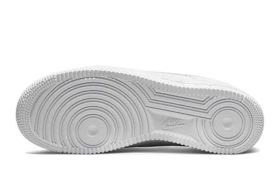 Der Nike Air Force 1 Low Nocta Drake Certified Lover Boy übernimmt die Kurven der im Jahr 1982 von Bruce Kilgore erfundenen Silhouette und fügt einige Details hinzu, die sie besonders machen. Die Oberseite besteht aus rauem Leder in Weiß. Nur die Doppelnähte bieten einen leichten Farbkontrast. Auf dem Fersenstreifen des linken Schuhs erkennt man das Nocta-Logo, während der Schriftzug "AIR" auf der Sohle durch "Love you forever" ersetzt wurde.