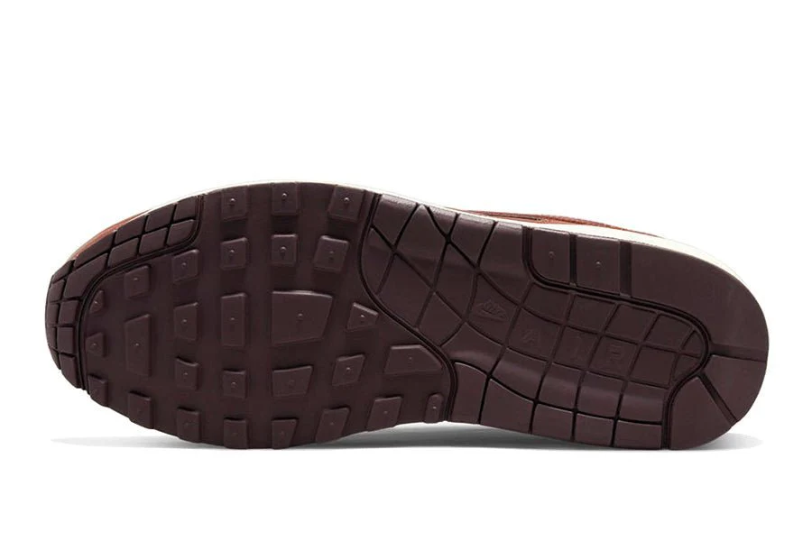 der nike air max 1 patta tan brown hat eine graue mesh-mischstruktur, die durch braune leder-overlays über das gesamte obermaterial ergänzt wird. der wellenförmige mudguard, das markenzeichen der kollektion, ist mit einem eleganten glossy-effekt versehen. details wie der swoosh aus ton-in-ton-leder, die ösen, der gestickte mini-swoosh und das nike air-branding an der ferse verleihen dem dunklen modell glanz. eine cremefarbene sohle auf einer schwarz-weißen, braunen outsole krönt das design von tinker hatfield.