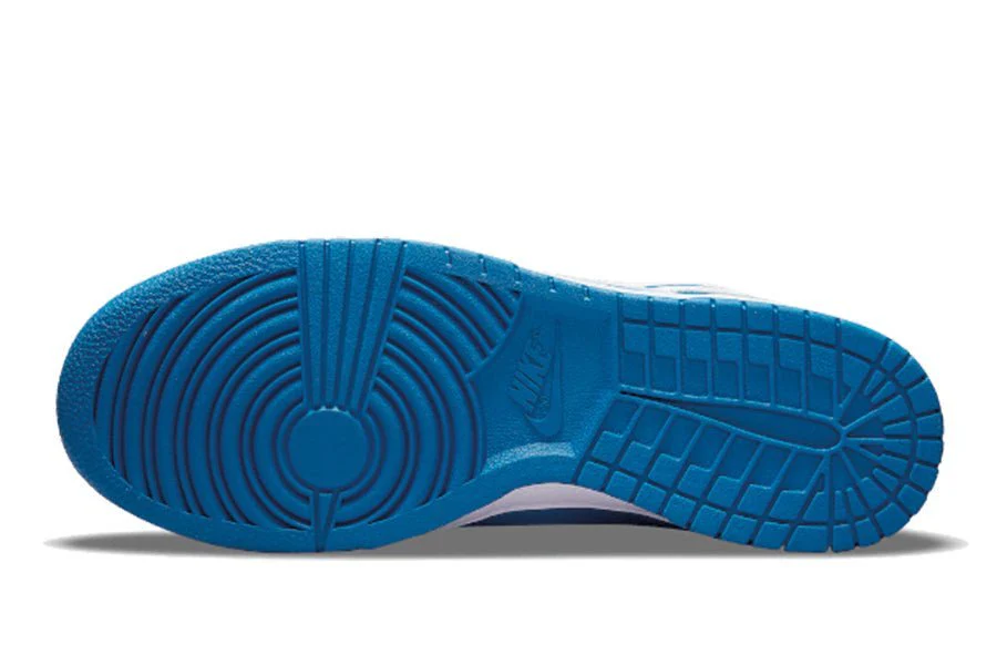 der nike dunk low dark marina blue hat ein himmelblaues lederobermaterial mit marineblauen overlays auf dem mudguard, den ösen und der ferse. die aquatische farbpalette wird durch weiße elemente wie das nike-branding, die schnürsenkel und den swoosh, der die silhouette umschließt, hervorgehoben. eine zwischensohle in der gleichen farbe vervollständigt das design von peter moore.