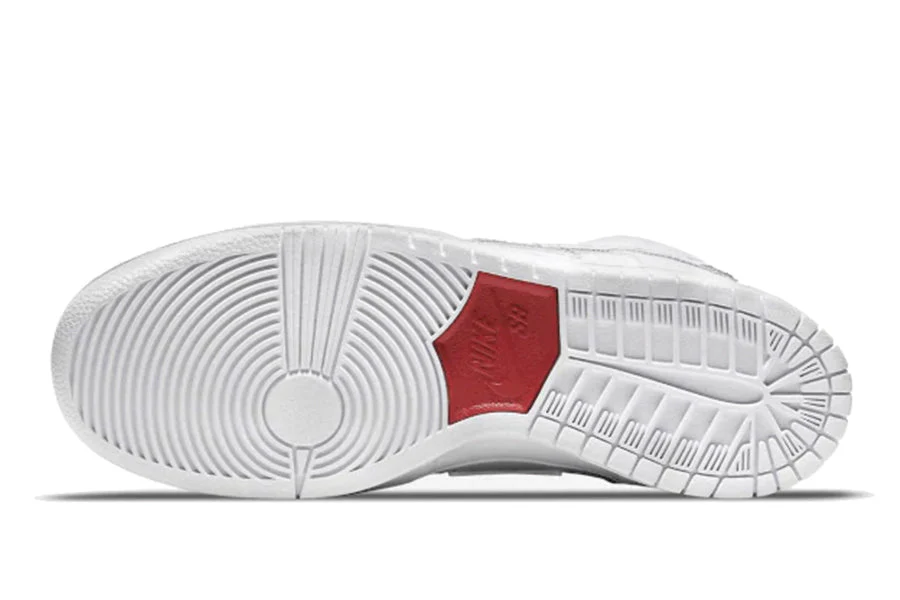 der nike sb dunk high oski great white shark hat eine basis aus weißem, genarbtem leder, die sich über das gesamte obermaterial erstreckt. der traditionelle swoosh lässt platz für einen grau-weißen hai, das markenzeichen des skaters aus malmö. rote details finden sich auf den co-brandings und auf den nähten der sohle mit zoom air-technologie.